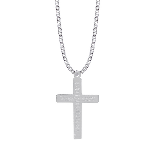 Simple Cross with Lord's Prayer (The Our Father) on Back - Sterling Silver Necklace