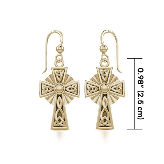 Modern Celtic Knotwork Cross Solid Gold Earrings