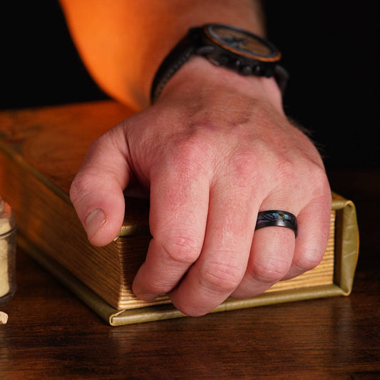 The Mariner - Men's Ring / Wedding Band - Black Zirconium with Abalone Shell