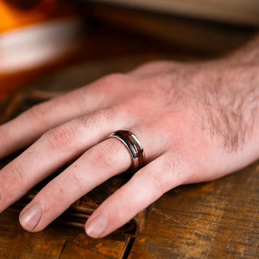 The Rancher - Men's Ring / Wedding Band - Platinum Plated Tungsten with Koa Wood