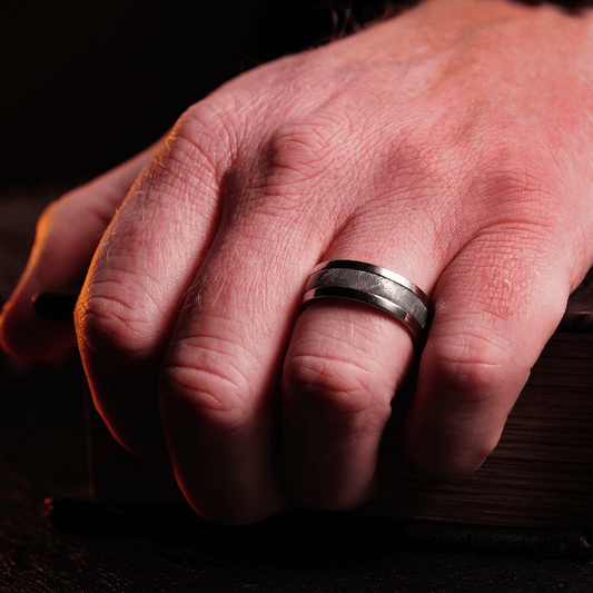 The Rocketeer - Men's Ring / Wedding Band - Titanium with Meteorite Inlay