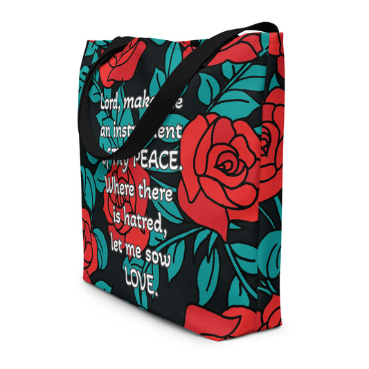 St Francis' Prayer of Peace - Large Floral Tote Bag with interior pocket
