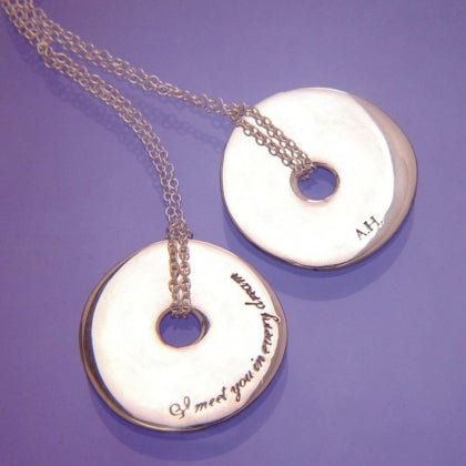 This sterling silver Pi disc necklace has been finely engraved with a quotation from Founding Father and American statesman Alexander Hamilton to his fiancee: