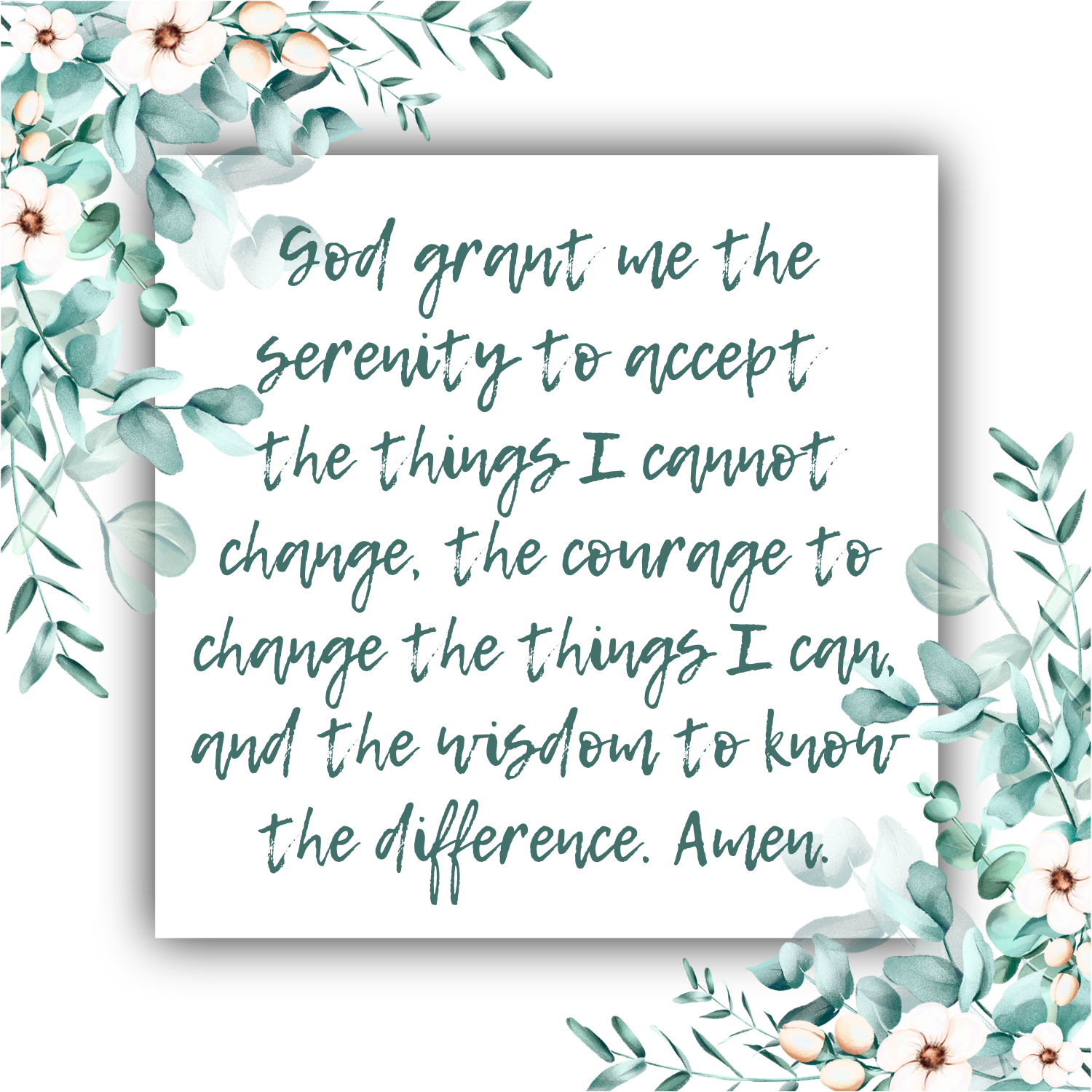 God grant me the serenity to accept the things I cannot change. The courage to change the things I can, and the wisdom to know the difference. Amen.