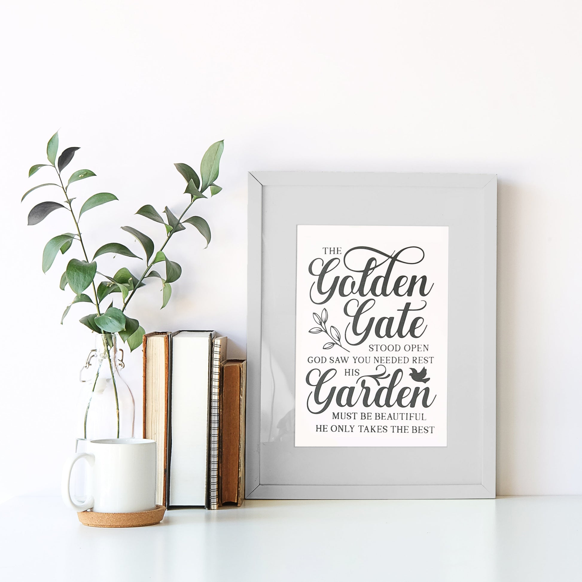 "The Golden Gate stood open, God saw you needed rest, His garden must be beautiful, He only takes the best."