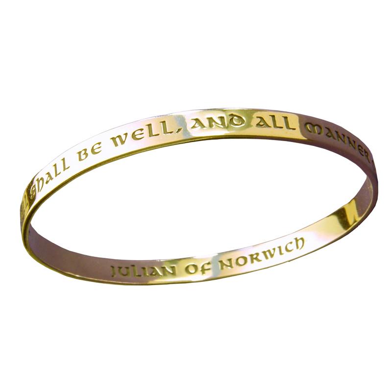 This sterling silver bangle bracelet is engraved with a quotation from Christian mystic Julian of Norwich. One of the most well known and loved passages in her book, it brings comfort today just as it has for centuries before: