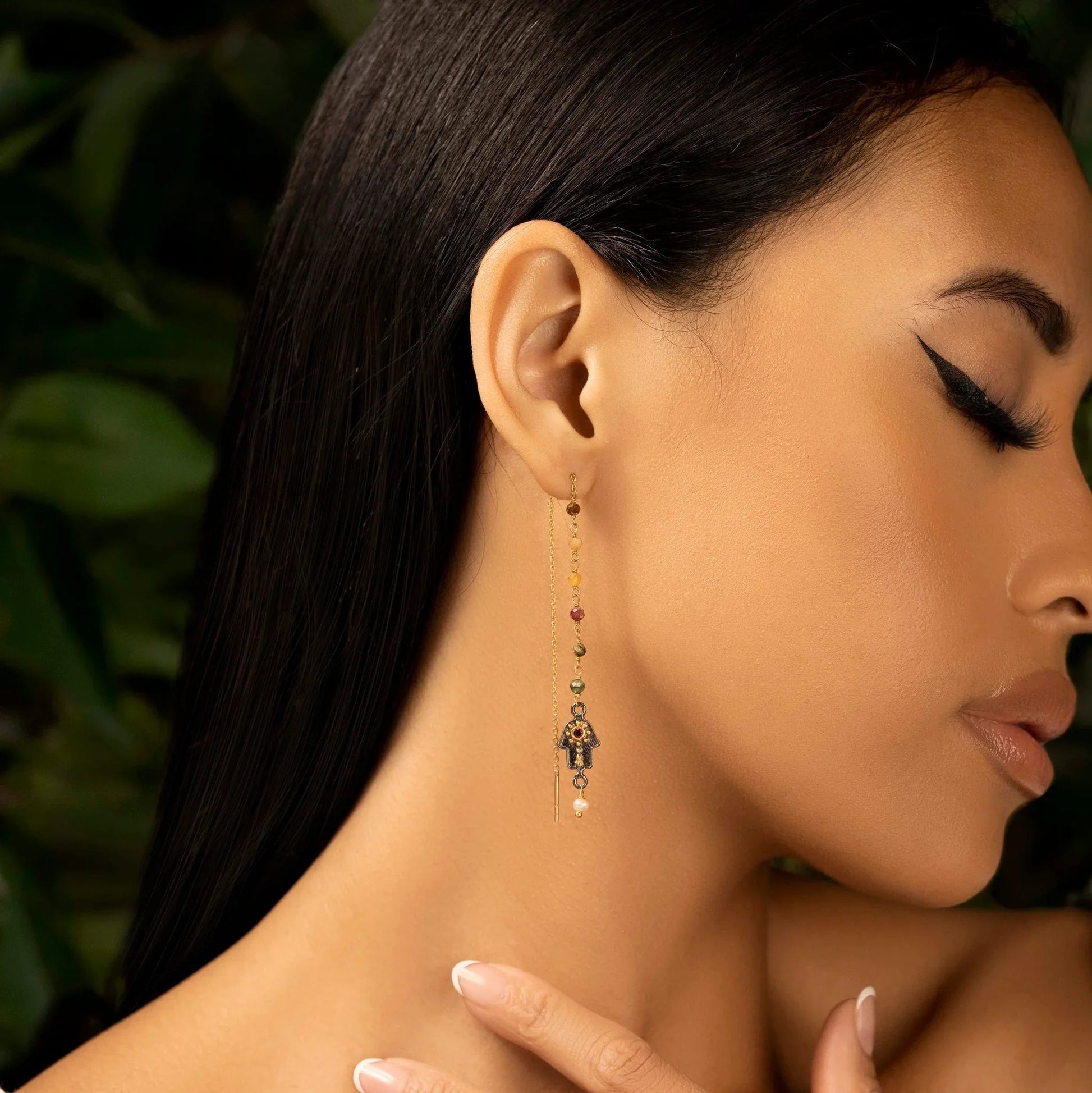 You can never waste a moment when it comes to love and kindness. They always make a difference. They bless the one who receives them, and they bless you, the giver. Our lovely "Attract Love - Tourmaline Hamsa Earrings" bring an influx of joy, protection, and love of all kinds – self-love or love of another into your life. Tourmaline stones will help enhance and nurture all the social relationships in your life, and it also helps to get your thoughts in order. The policy of no refunds and no returns applies to all earrings.