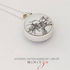 South African artist Minitza van der Walt brings elegant modern design to her jewelry with her mixed media artistry, a combination of Etching, Marley print, Silkscreen and Drawing, all deeply inspired by the remarkable African landscape. Her drawings have been translated into truly unique jewelry. Each piece is a splendid work of art, embodied with her strong passion for nature and design.