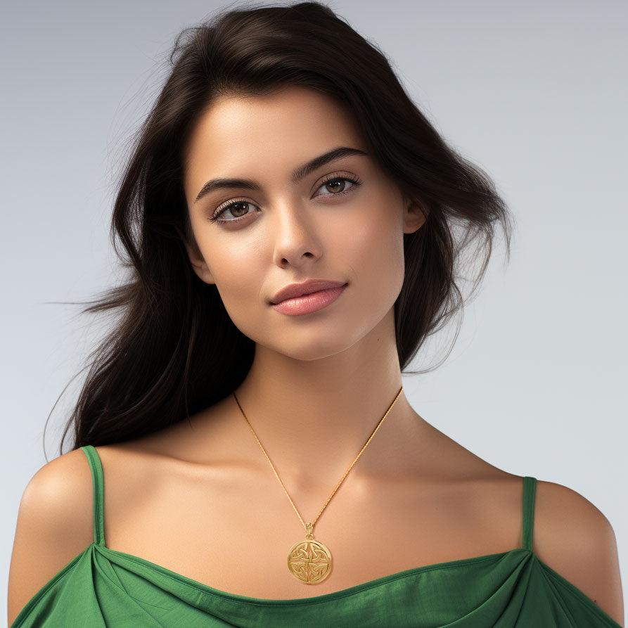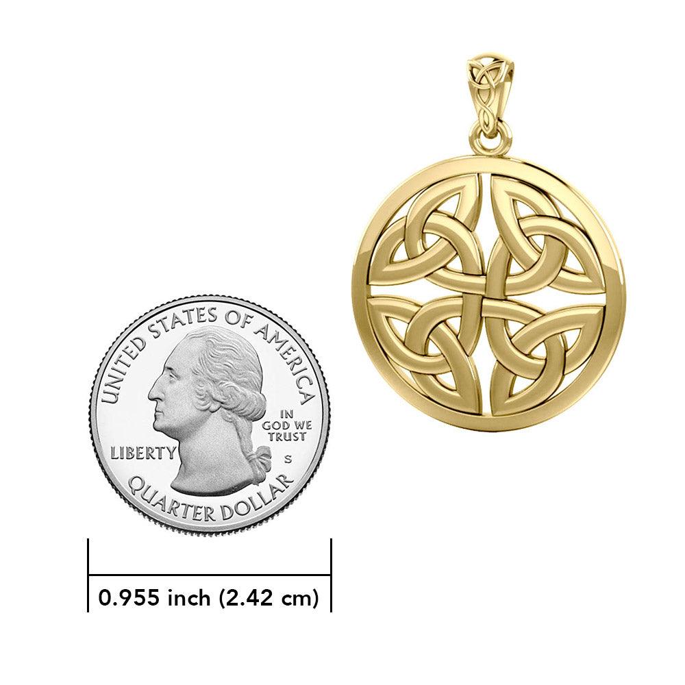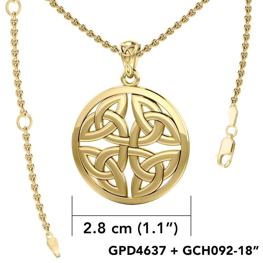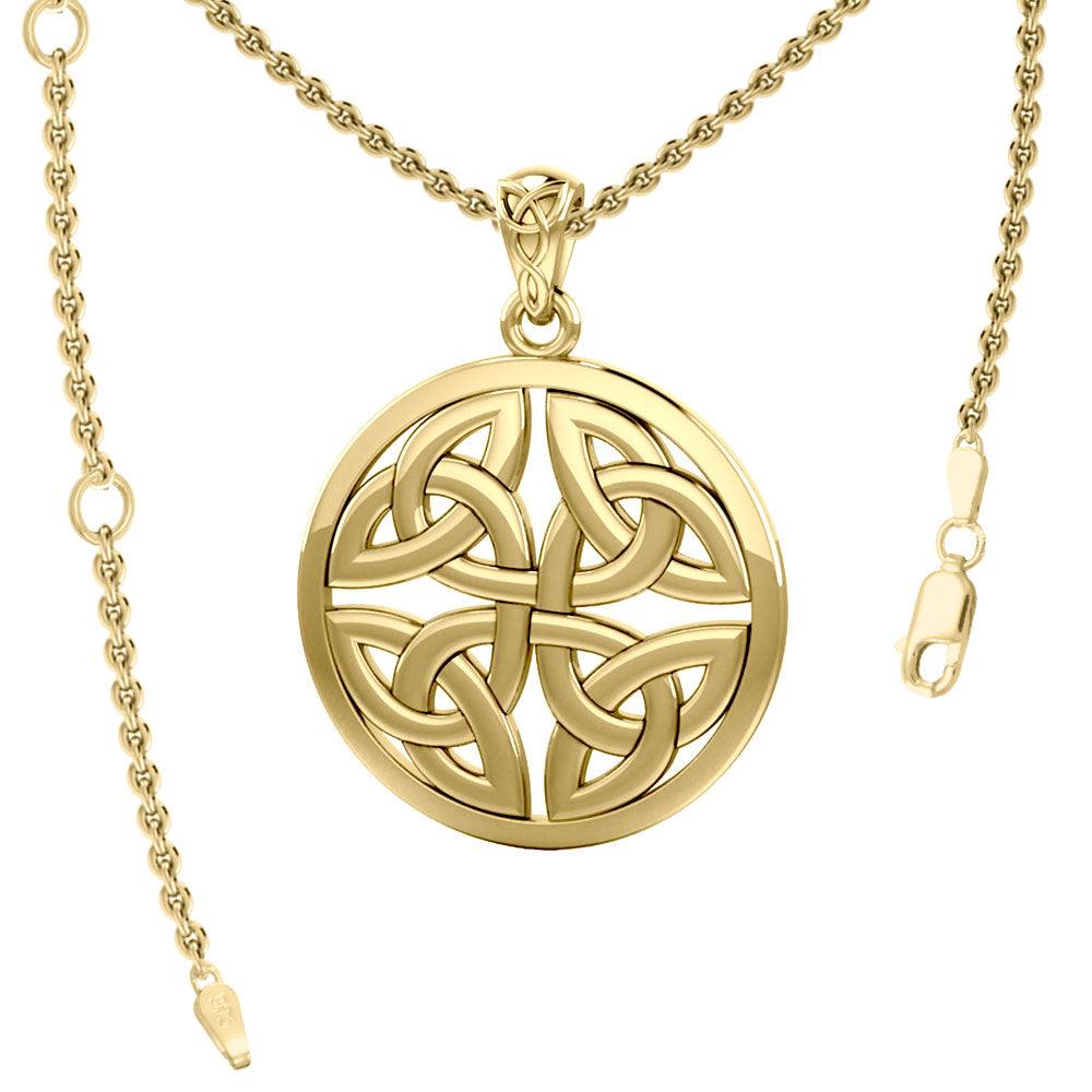 Celtic Trinity Quaternary Knot Solid Gold Pendant