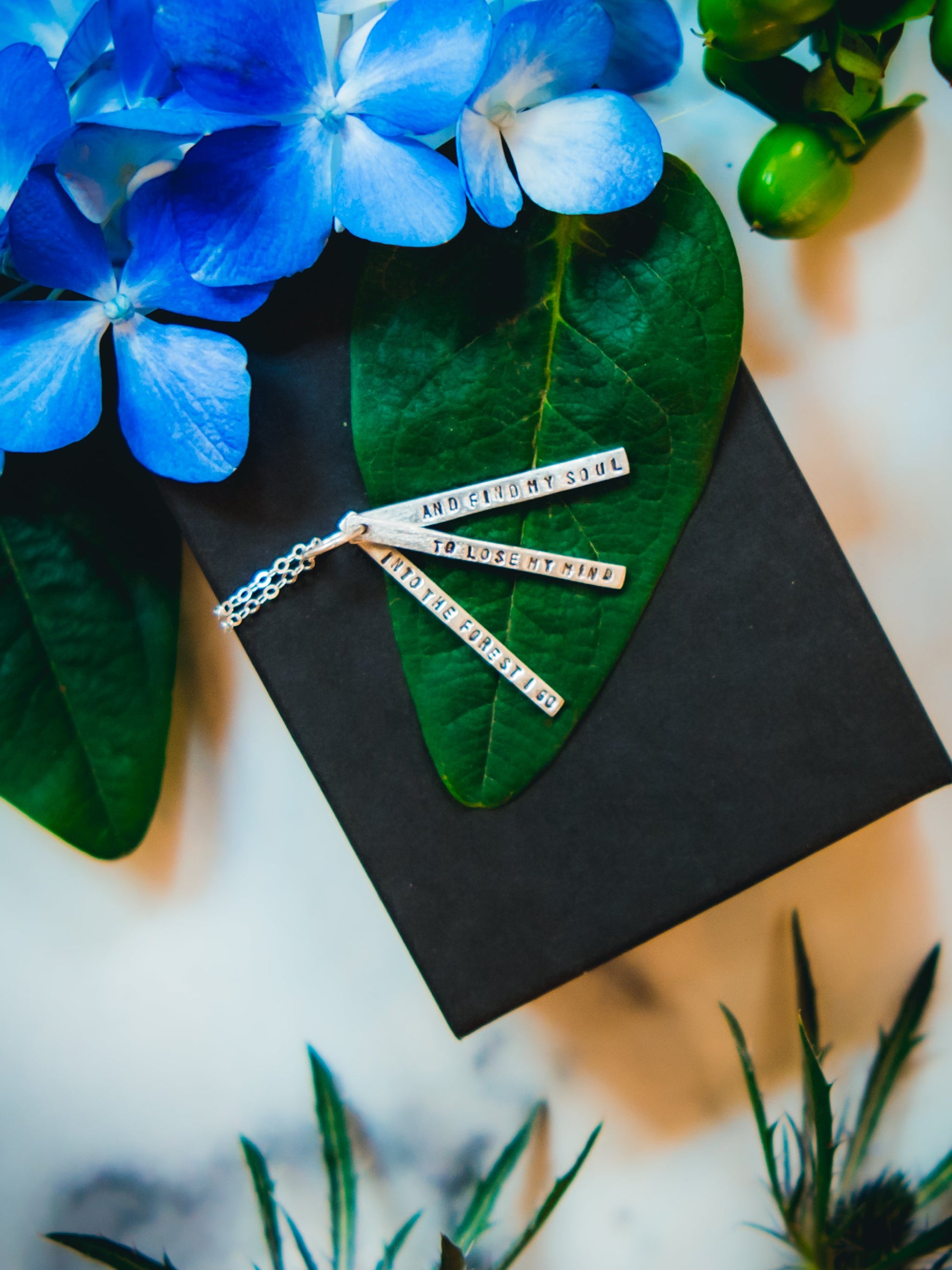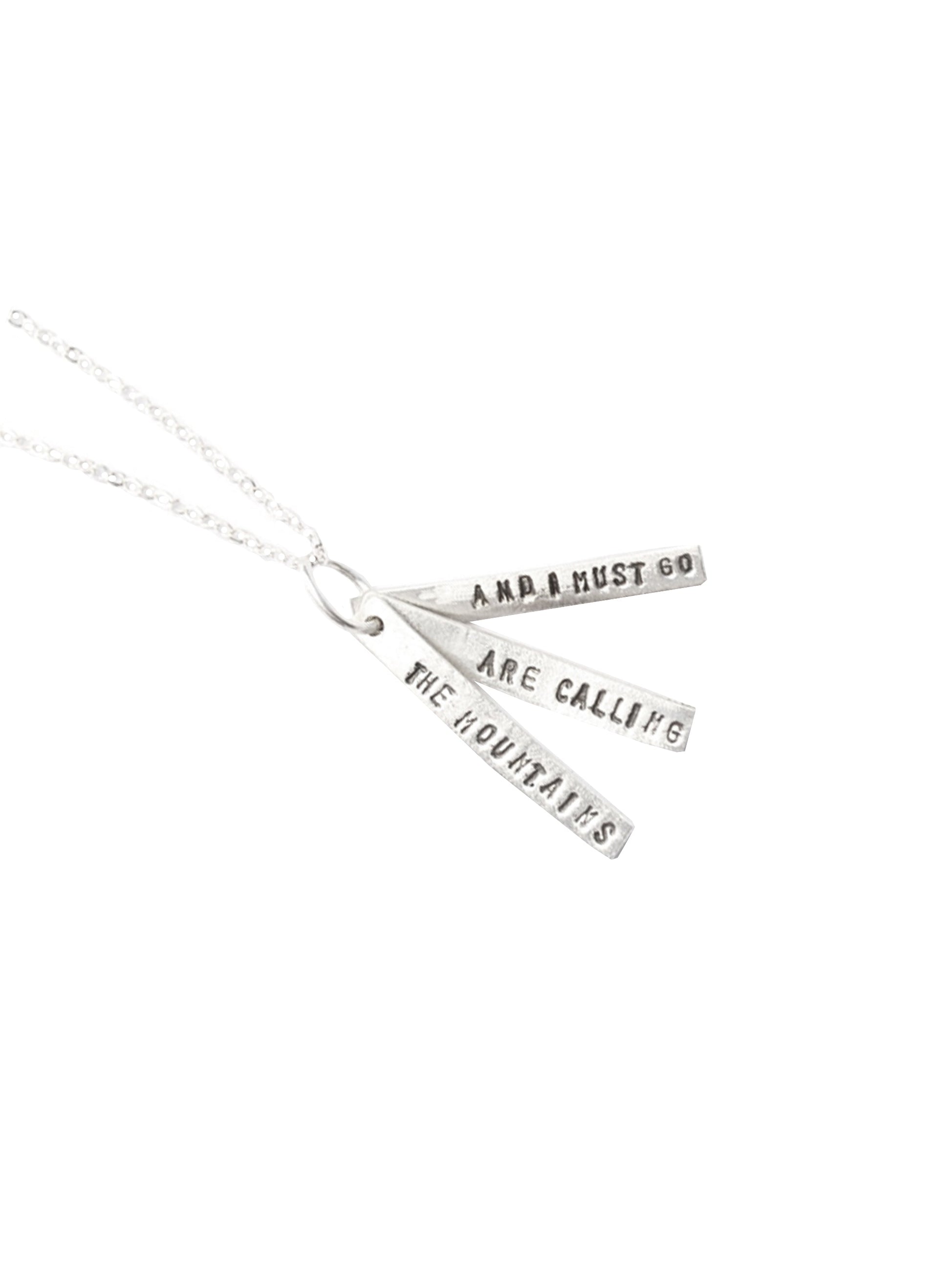 Inspiration from John Muir, the father of America's national park system, these Chocolate & Steel sterling silver and gold vermeil necklaces are hand stamped with Muir's most famous nature quotes.