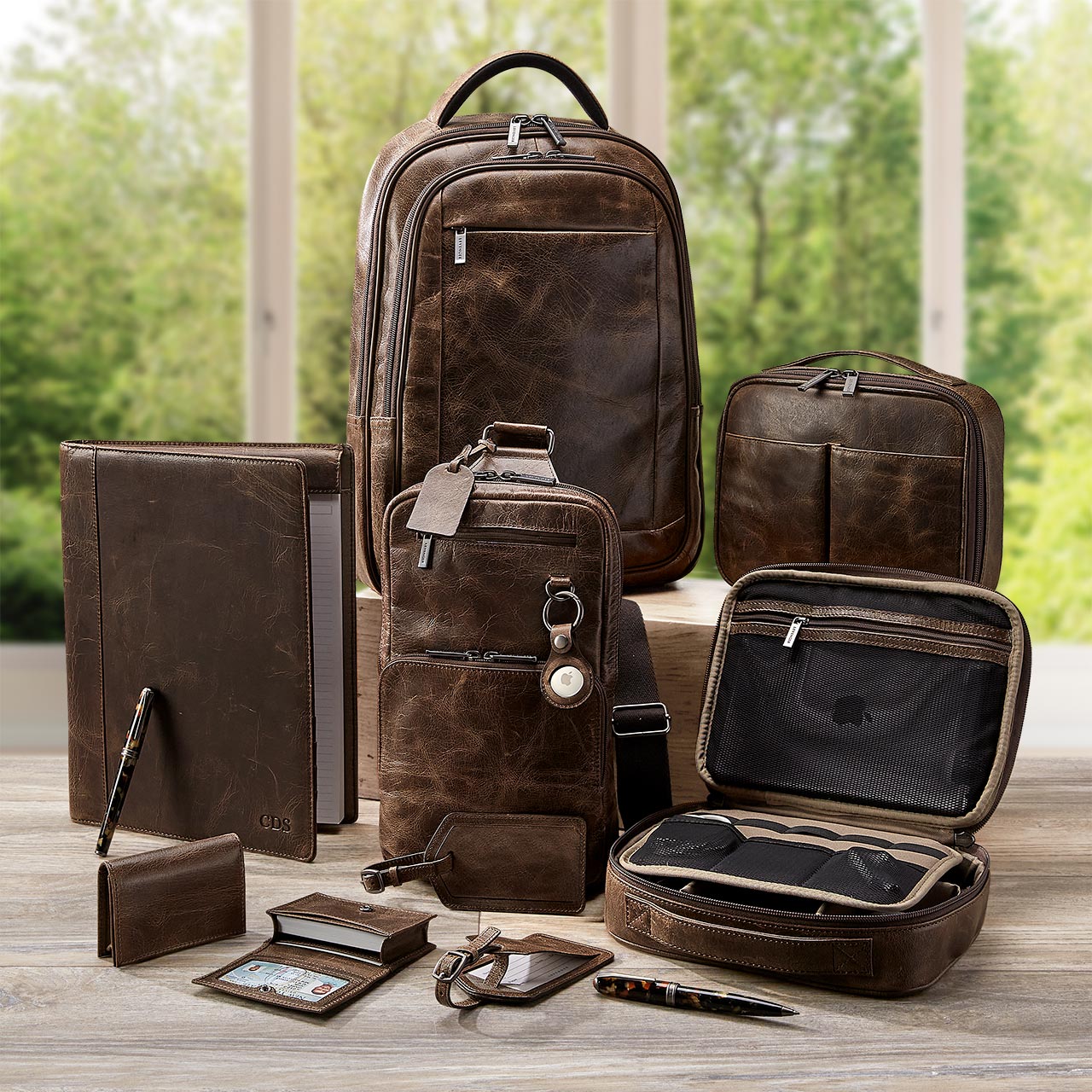 The signature ‘distressed’ look of our hand-stained, full-grain buffalo leather makes these pieces look as if they’ve already traveled many miles. The marks and creases the leather incurs during the process add to the rugged character of the product. No two items are exactly alike.