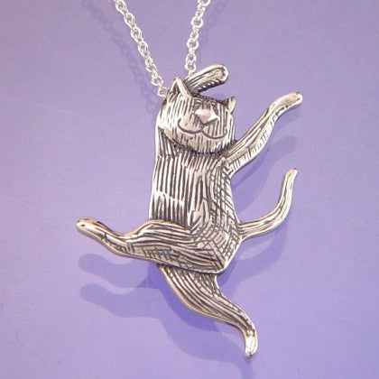This adorable cat is adapted from American artist Edward Gorey's illustrations for Old Possum's Book of Practical Cats by T.S. Elliott. Gorey's initials are on the back. A great gift for the cat lover in your life, this exuberant cat with his paws waving in the air is a sheer delight!