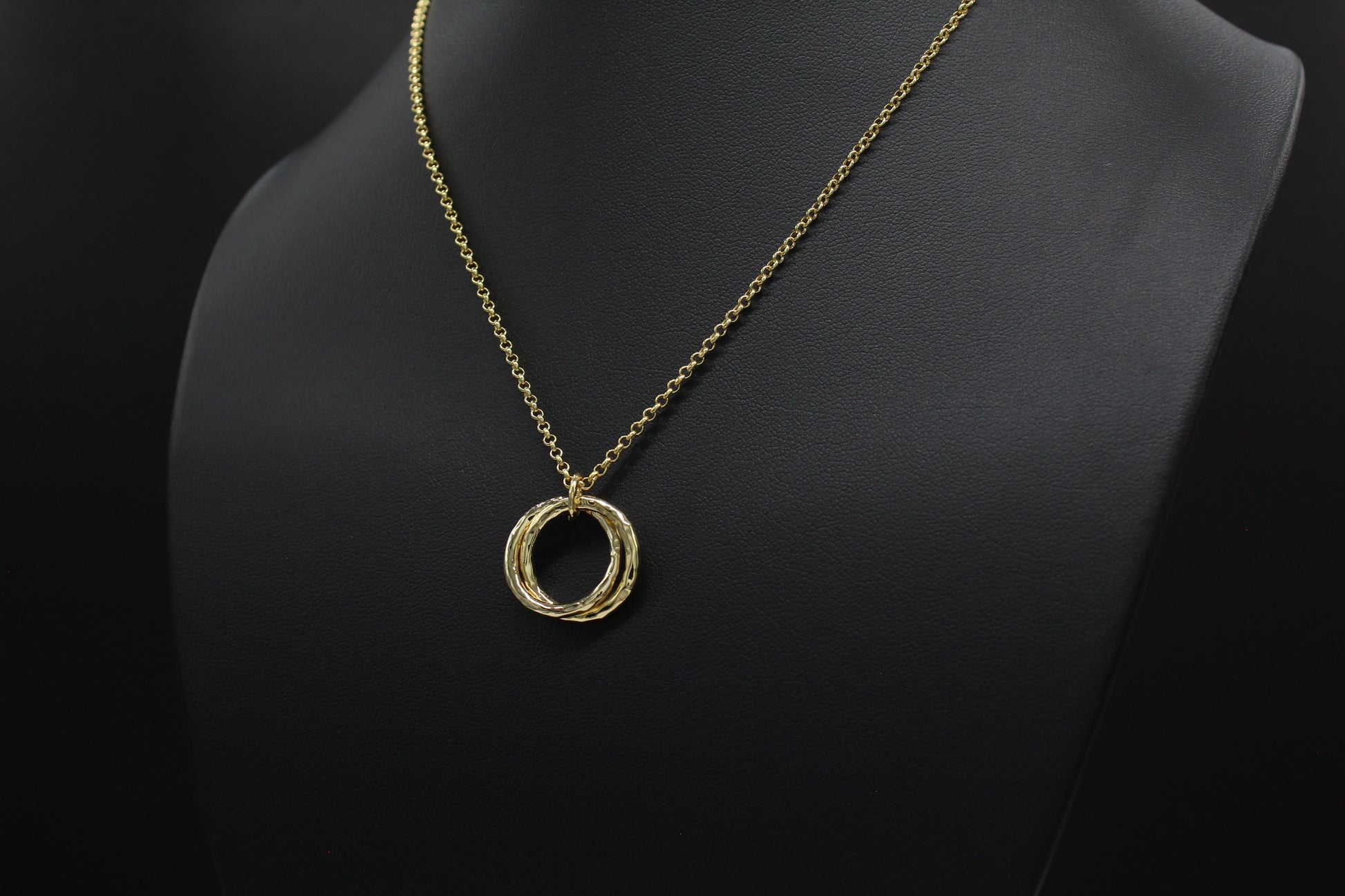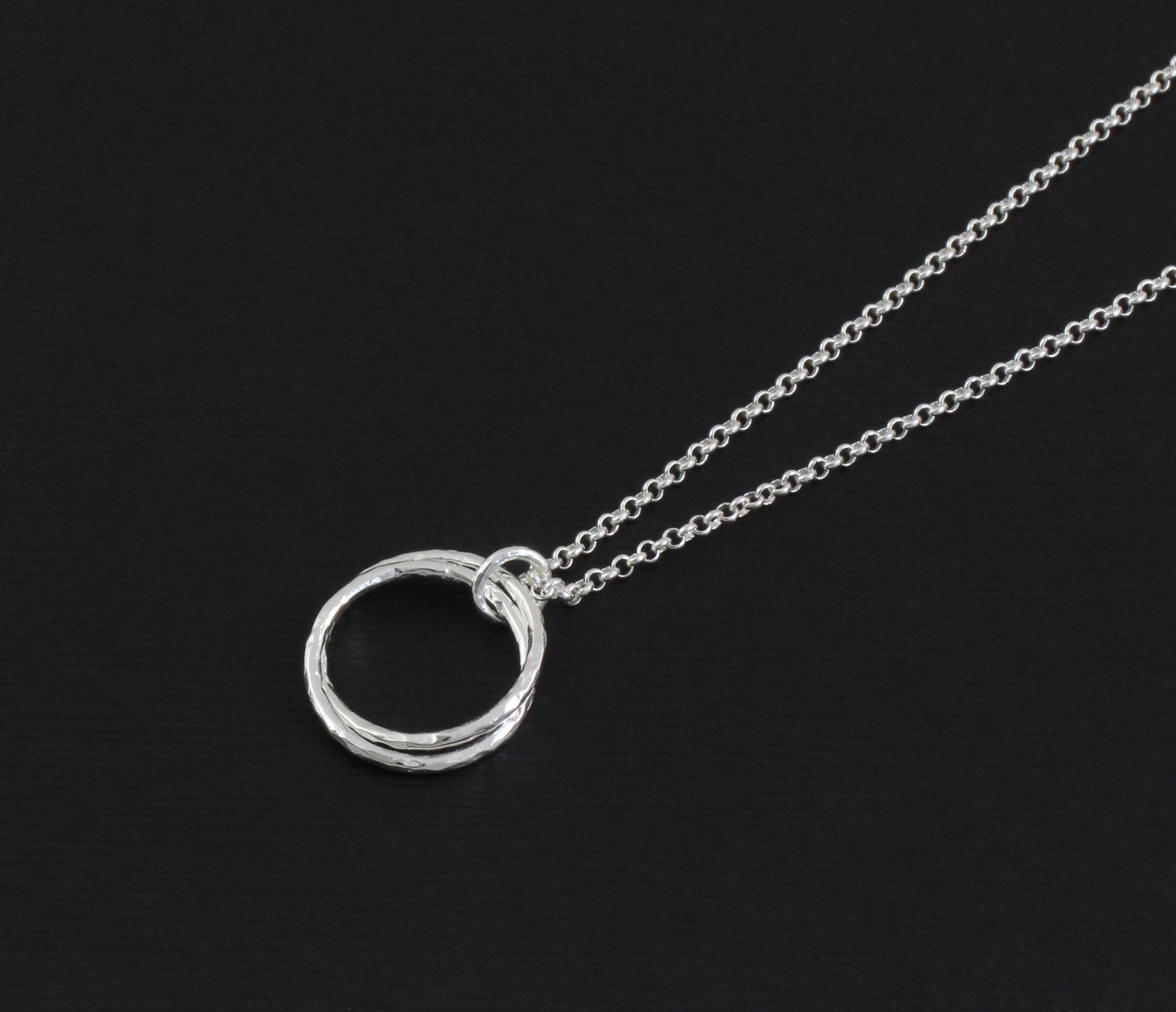 Sparkle in style with this timeless Hammered Linked Infinity Ring Necklace! Choose from either beautiful Silver or Gold for a unique look that will add a special touch to any occasion. Enjoy the craftsmanship and detail of the connected infinity rings and circles. Perfect for Birthdays, Valentines Day.