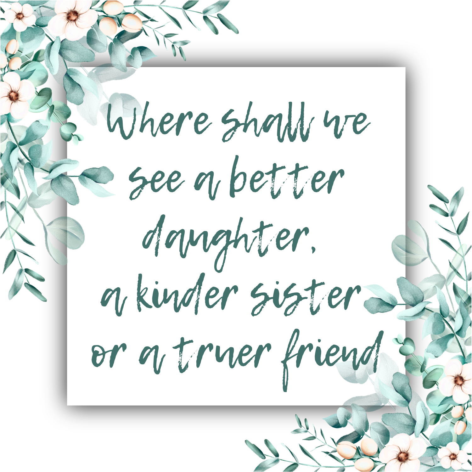 Where shall we see a better daughter, a kinder sister or a truer friend.