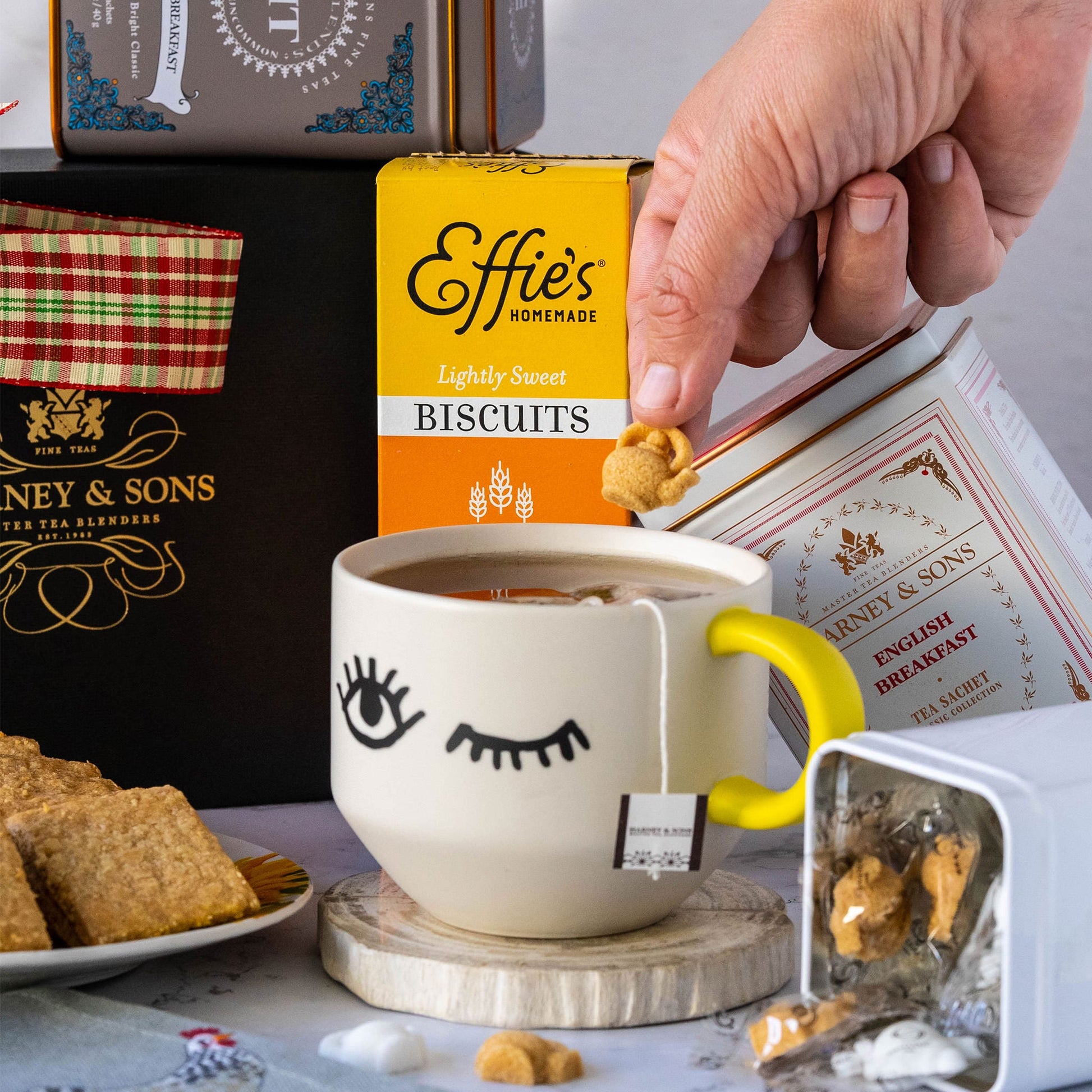 Our beautiful English Delight Gift features two tins of our English Breakfast tea: one is a traditional Chinese Keemun blend, and the other is a wake-you-up blend of Ceylon and African black tea. Enjoy your tea with our Traditional Teatime Shortbread for a flaky, buttery bite, and perhaps pop in some sugar from our sugar tin to taste. Together with the cheerful chicken tea towel, it's a perfect choice for the Anglophile tea lover!