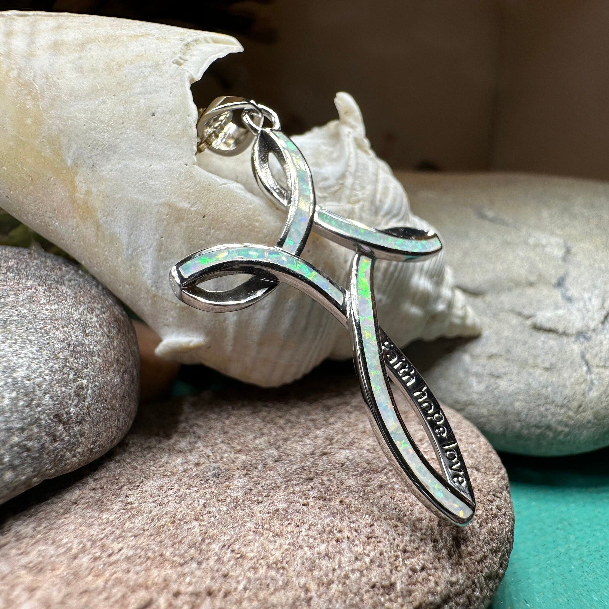 Solid Sterling Silver Celtic Cross Pendant with your choice of lab created opal inlay.