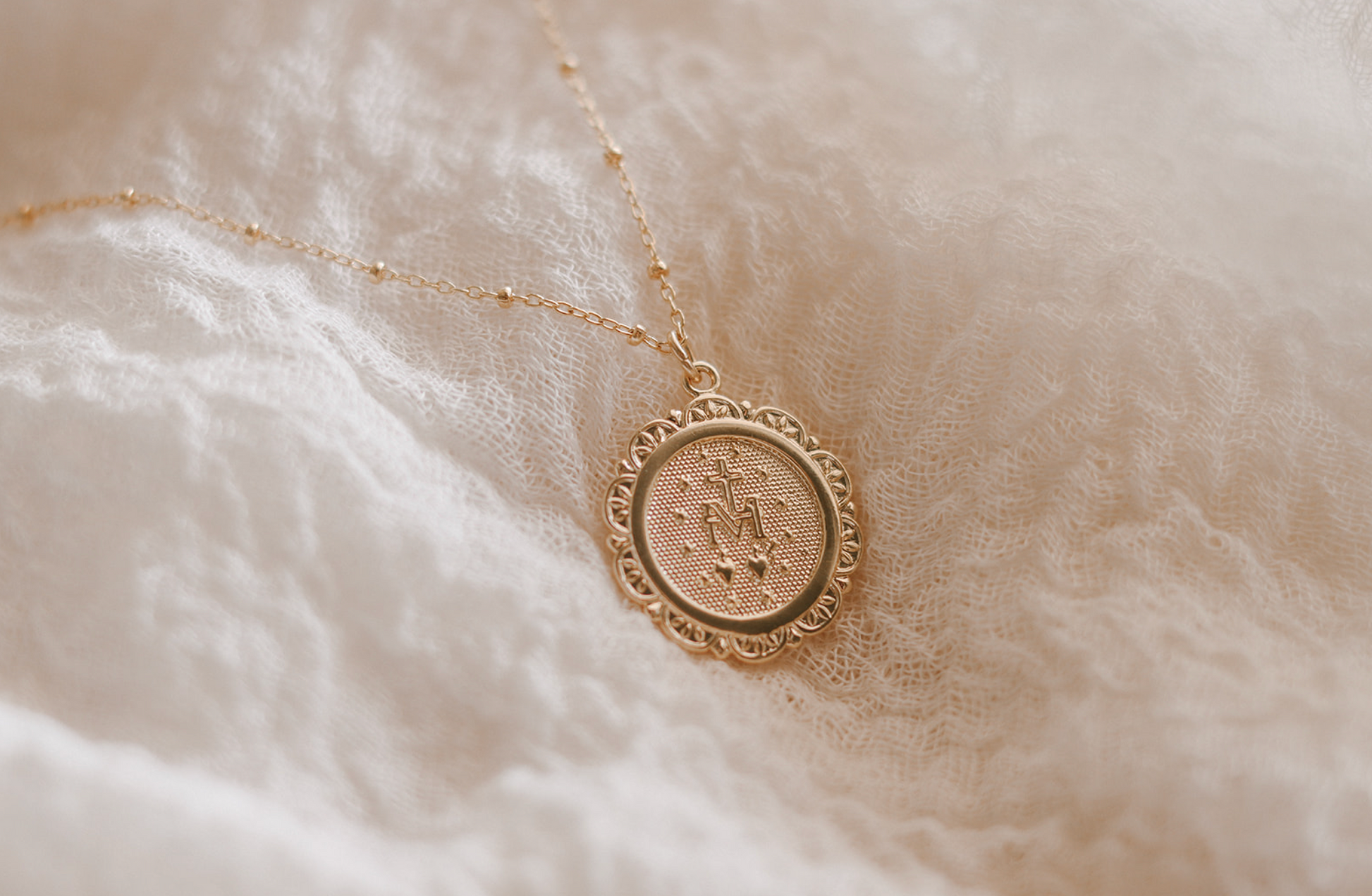 Filigree Miraculous Medal Necklace - 18k Gold Filled