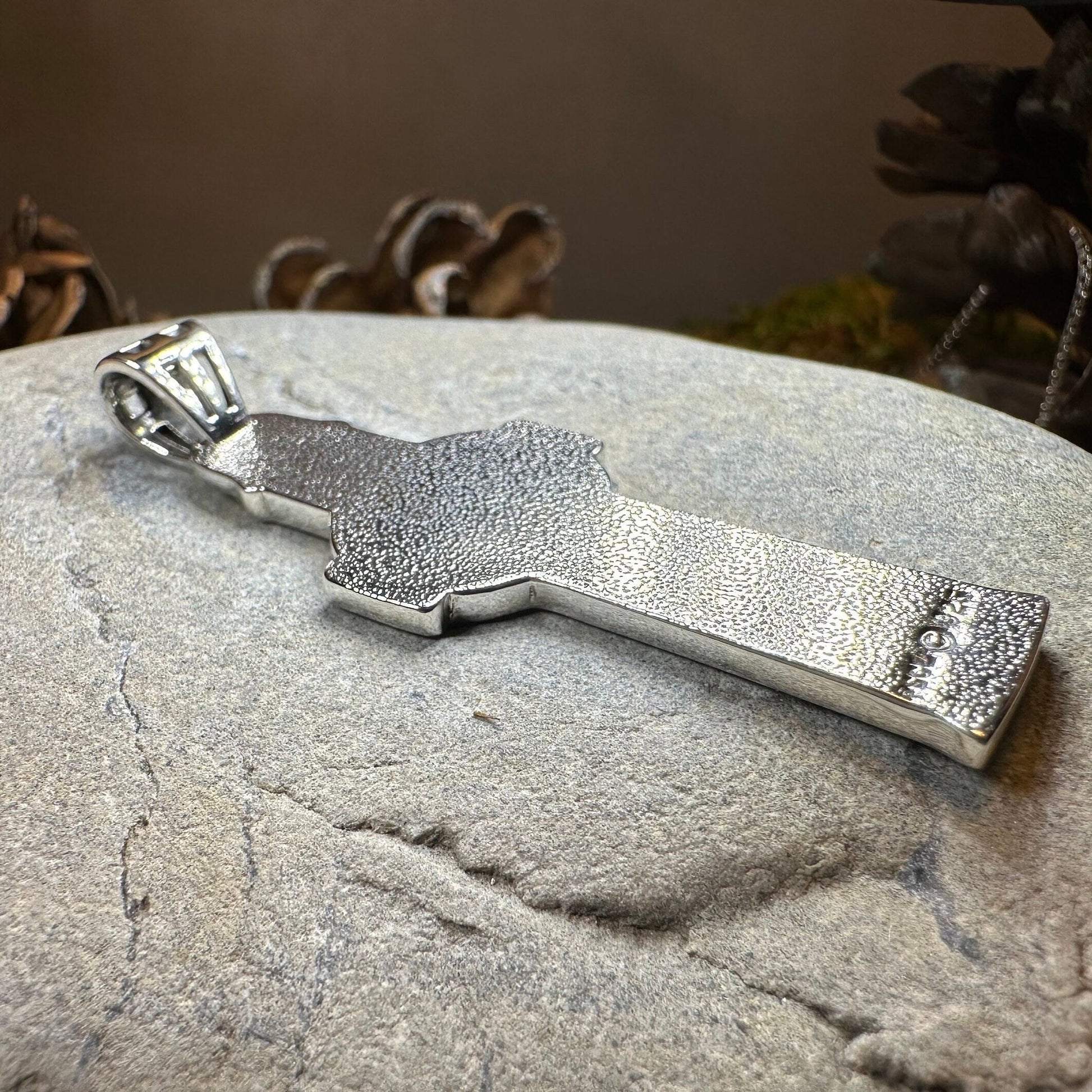 1 3/4" x 3/4" pendant size. Single sided design.