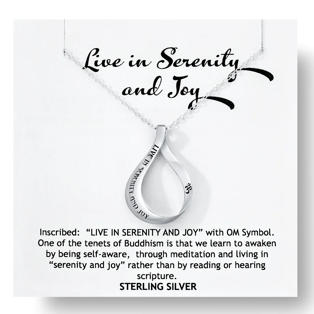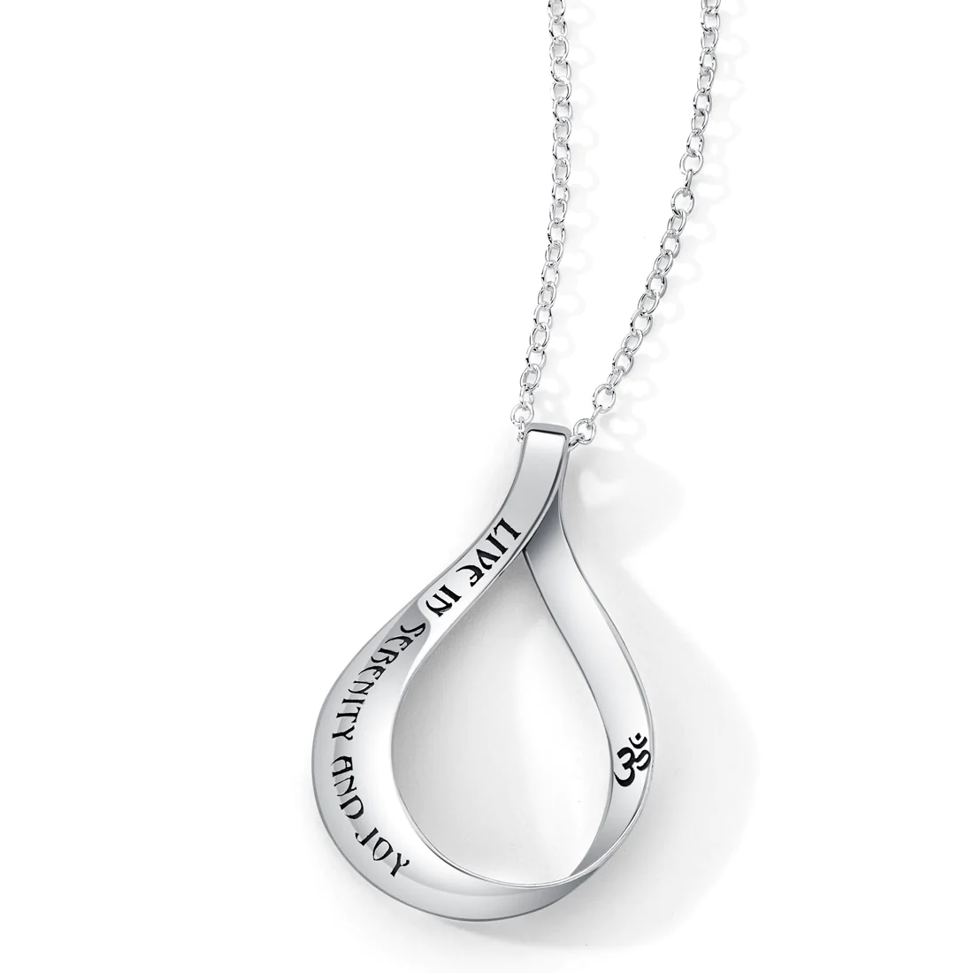 Live in Serenity and Joy (with Om Symbol) - Teardrop Mobius Necklace