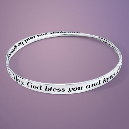 This elegant sterling silver Mobius bracelet is finely engraved with a quotation from Numbers 6:24-26: