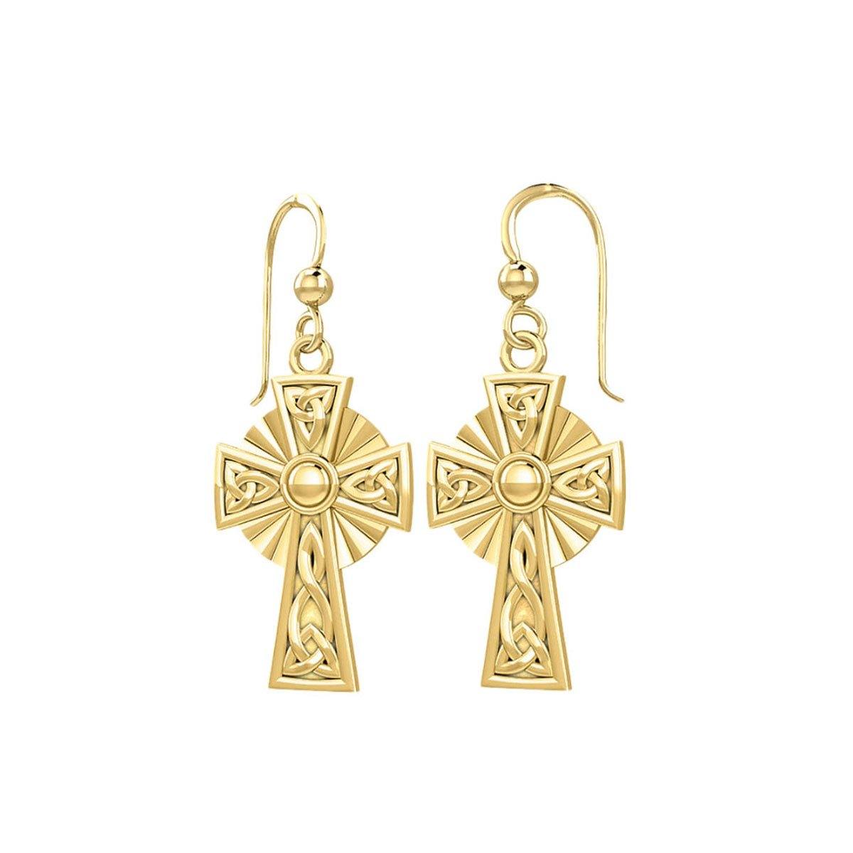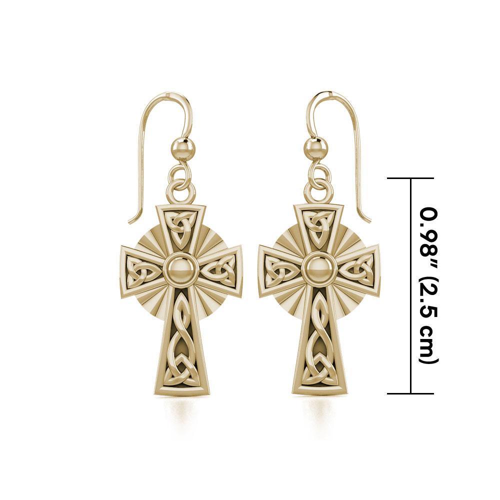 Modern Celtic Knotwork Cross Solid Gold Earrings