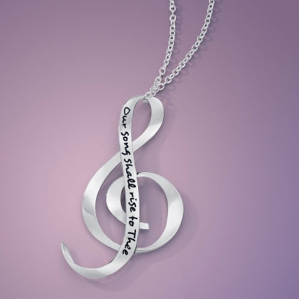 This sterling silver G clef pendant is finely engraved with a quote from a well loved Christian hymn: