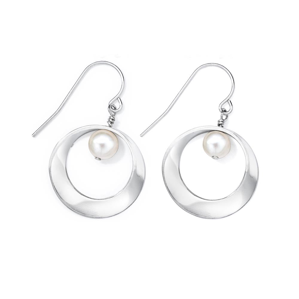 • Sterling silver mobius earrings with mini pearl.