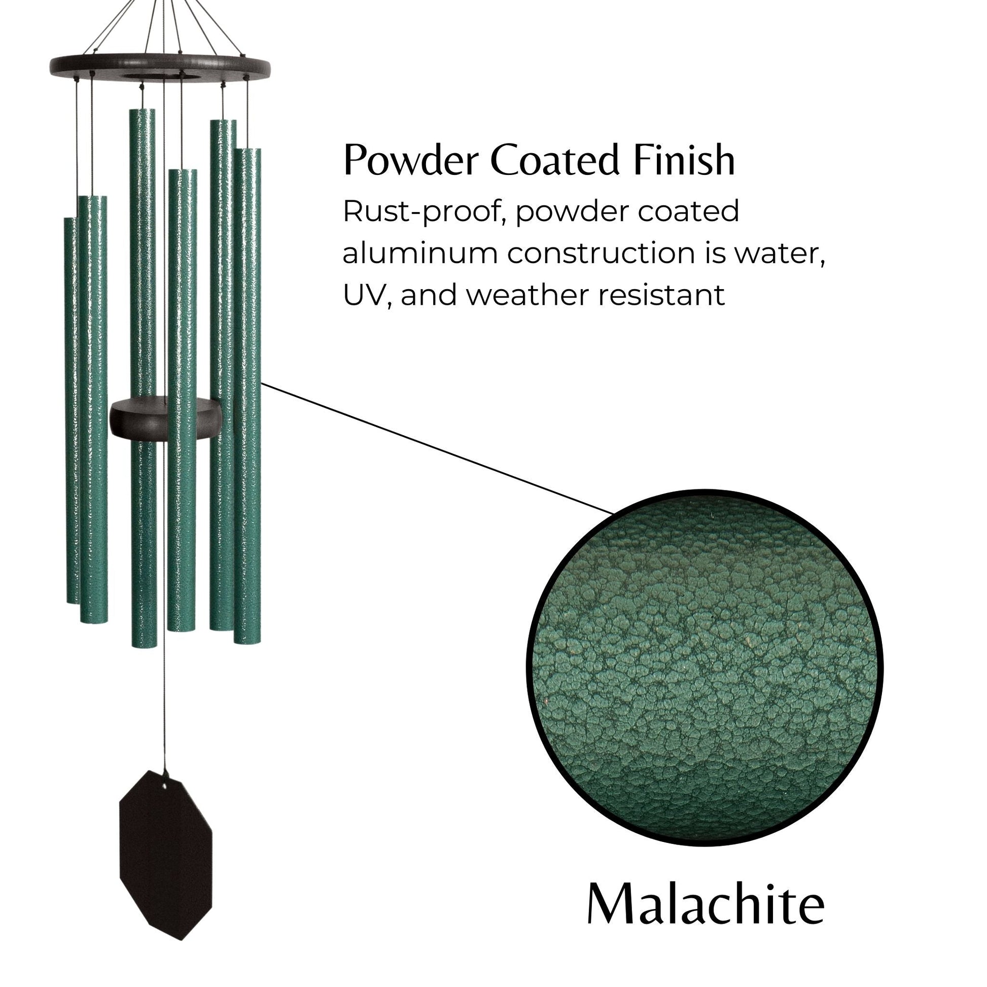 - Malachite Detail: Adorned with the vibrant green of malachite, these chimes bring a burst of color and life wherever they are hung.