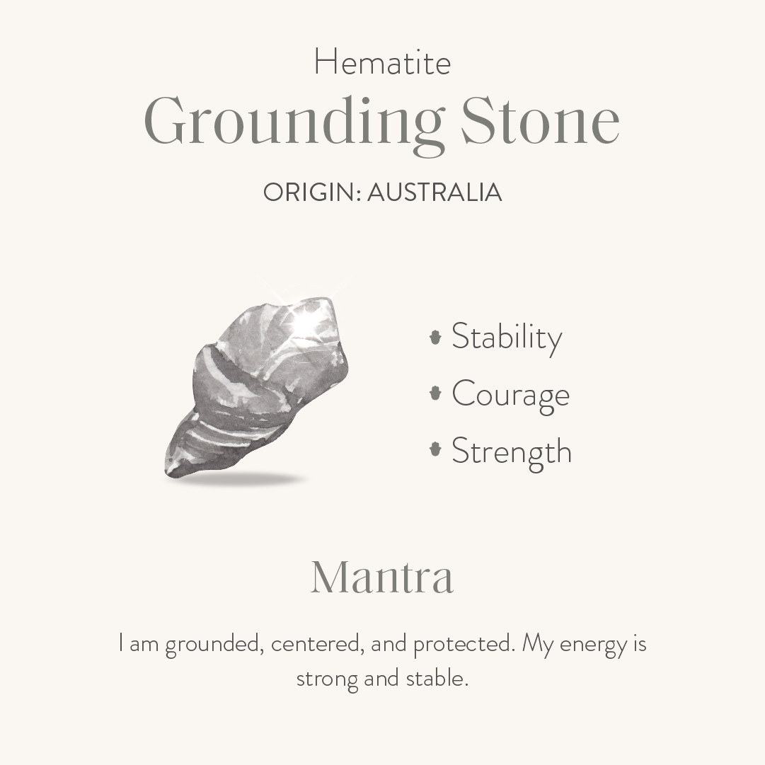 - Hematite Stones: calming, grounding, focus, centering.