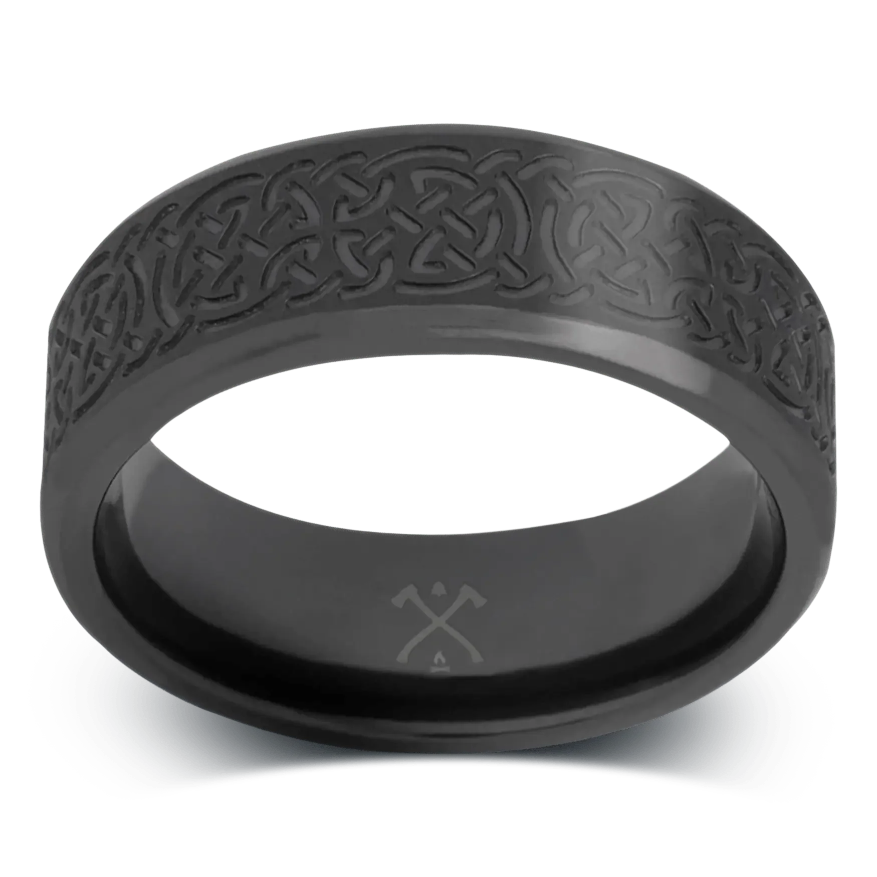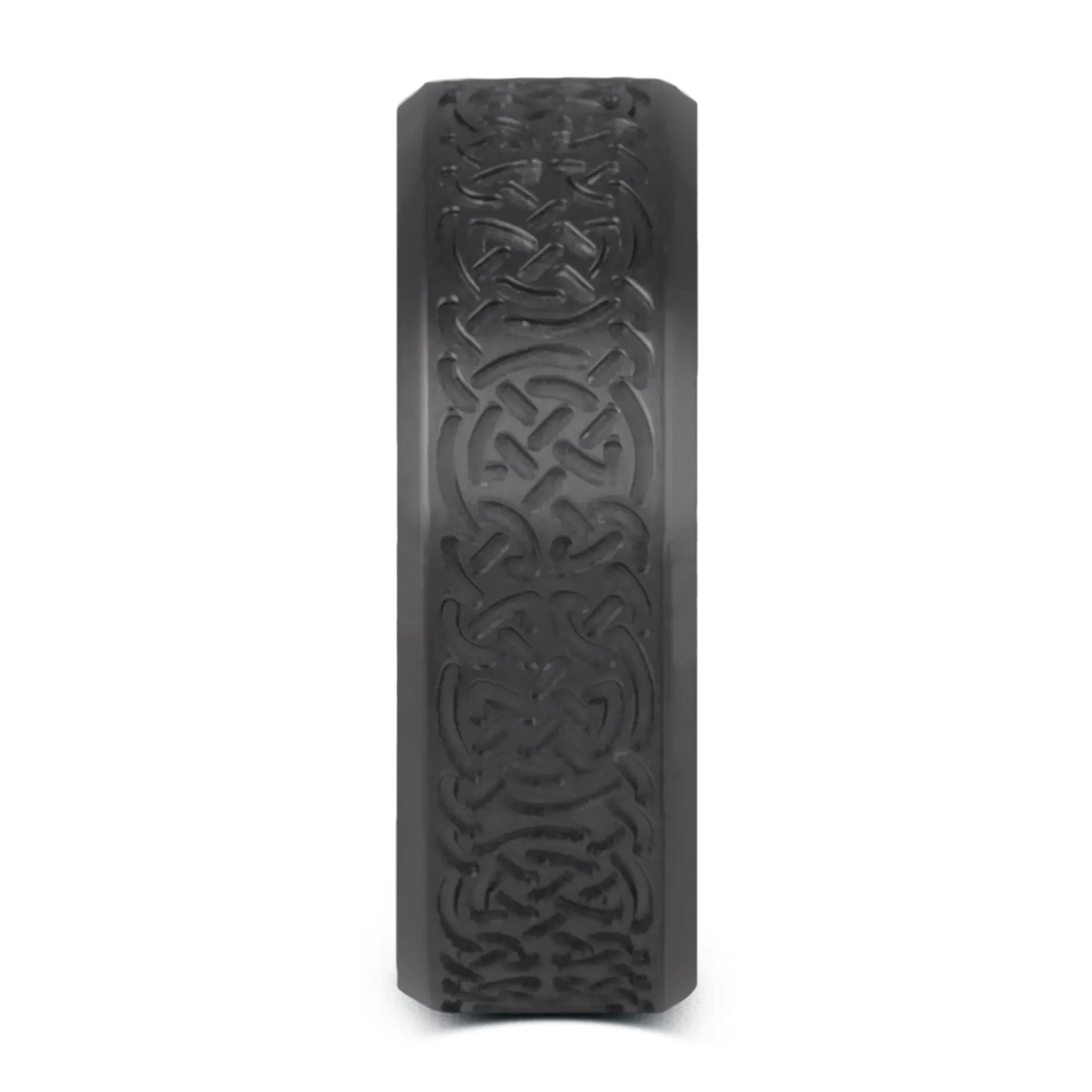 The Doire - Men's Ring / Wedding Band - Charcoal Gray Zirconium with Celtic Knotwork