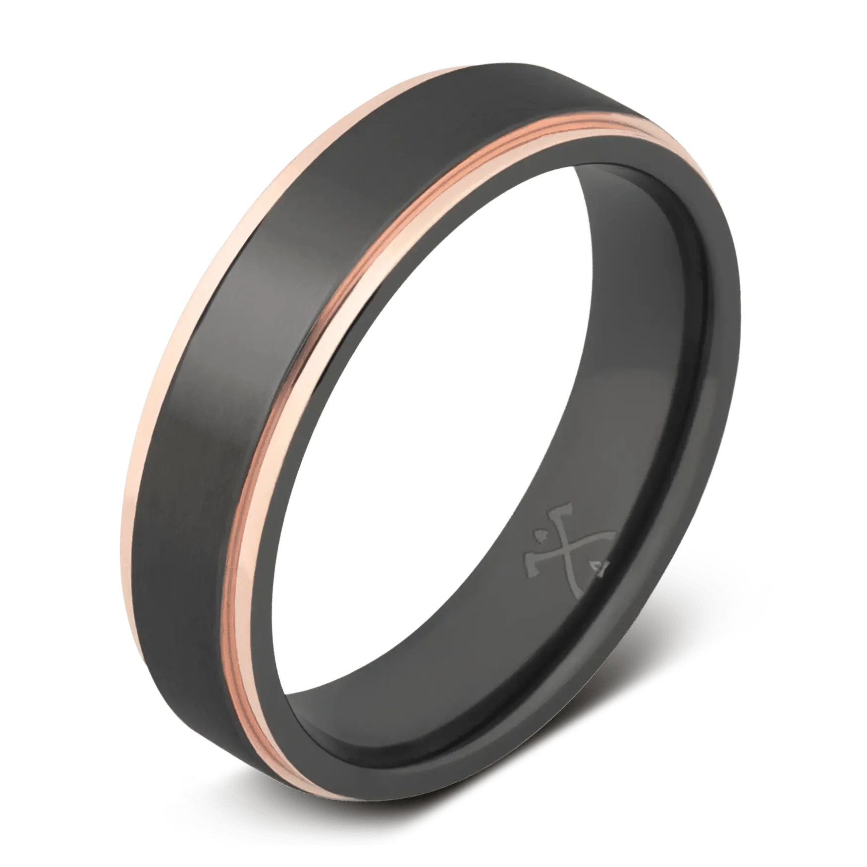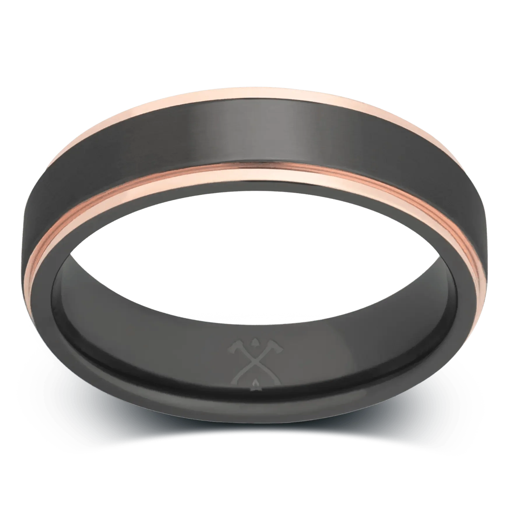 The Fitzgerald - Men's Ring / Wedding Band - Charcoal Gray Zirconium with Rose Gold