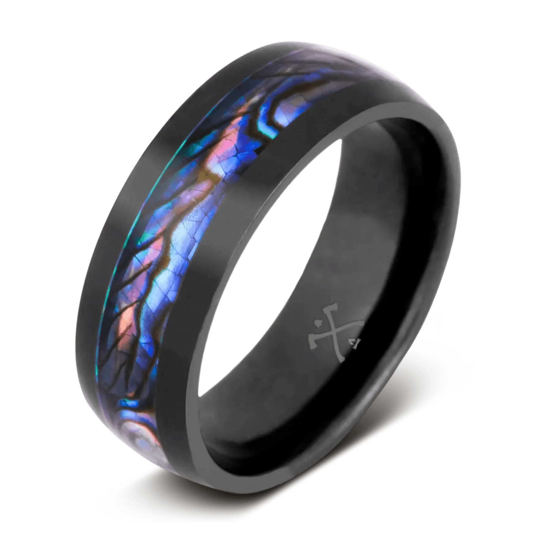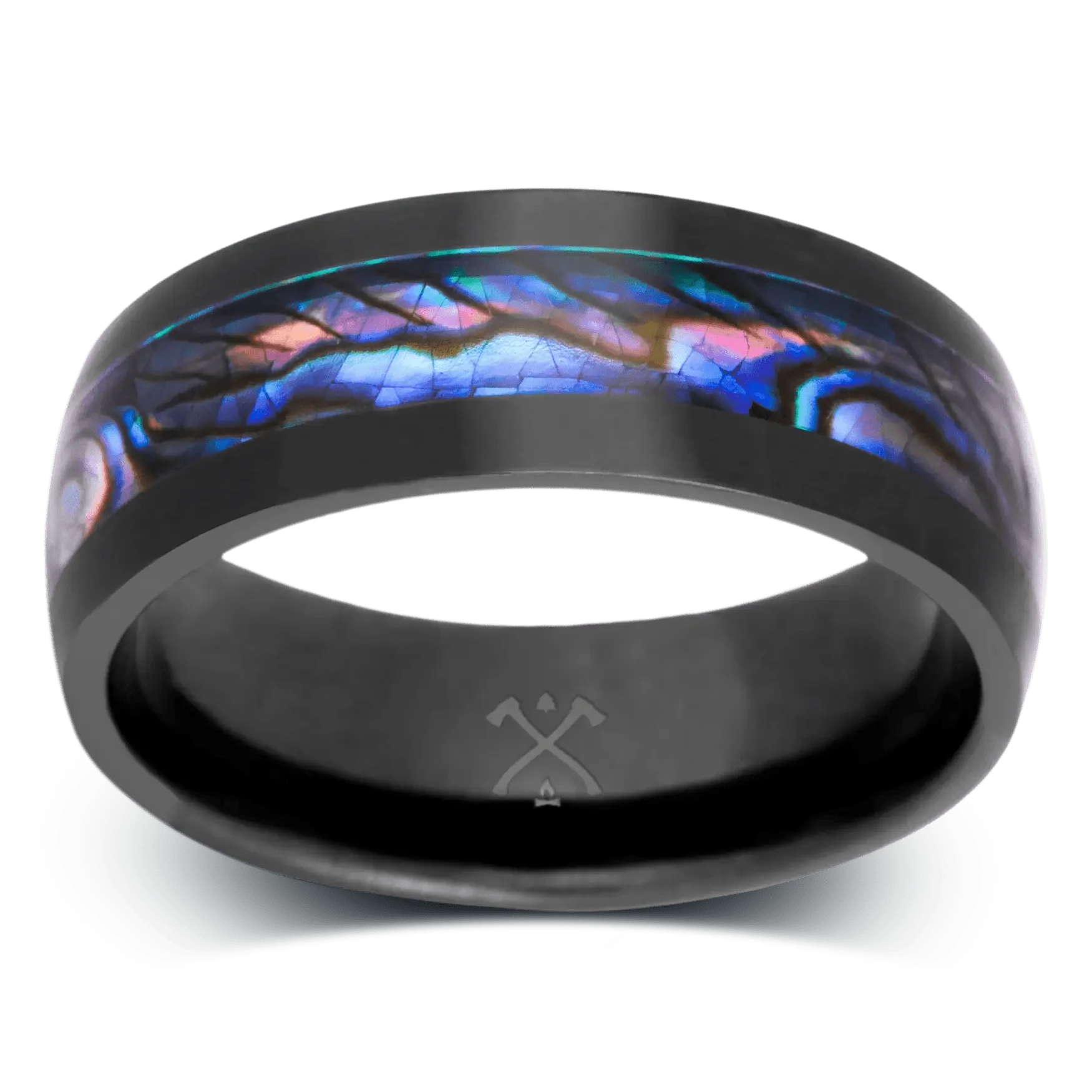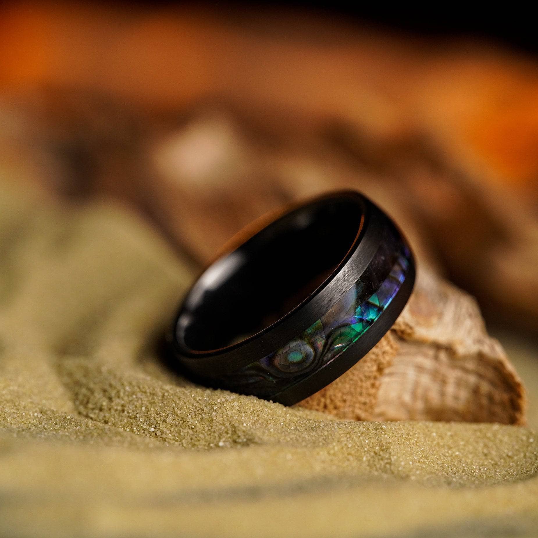 The Mariner - Men's Ring / Wedding Band - Black Zirconium with Abalone Shell