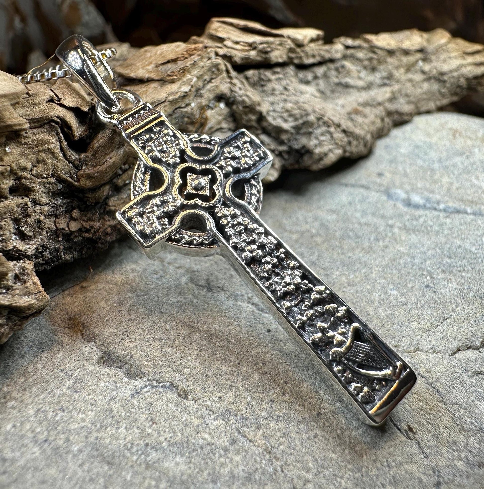 The Quinn Harp Celtic Cross Necklace