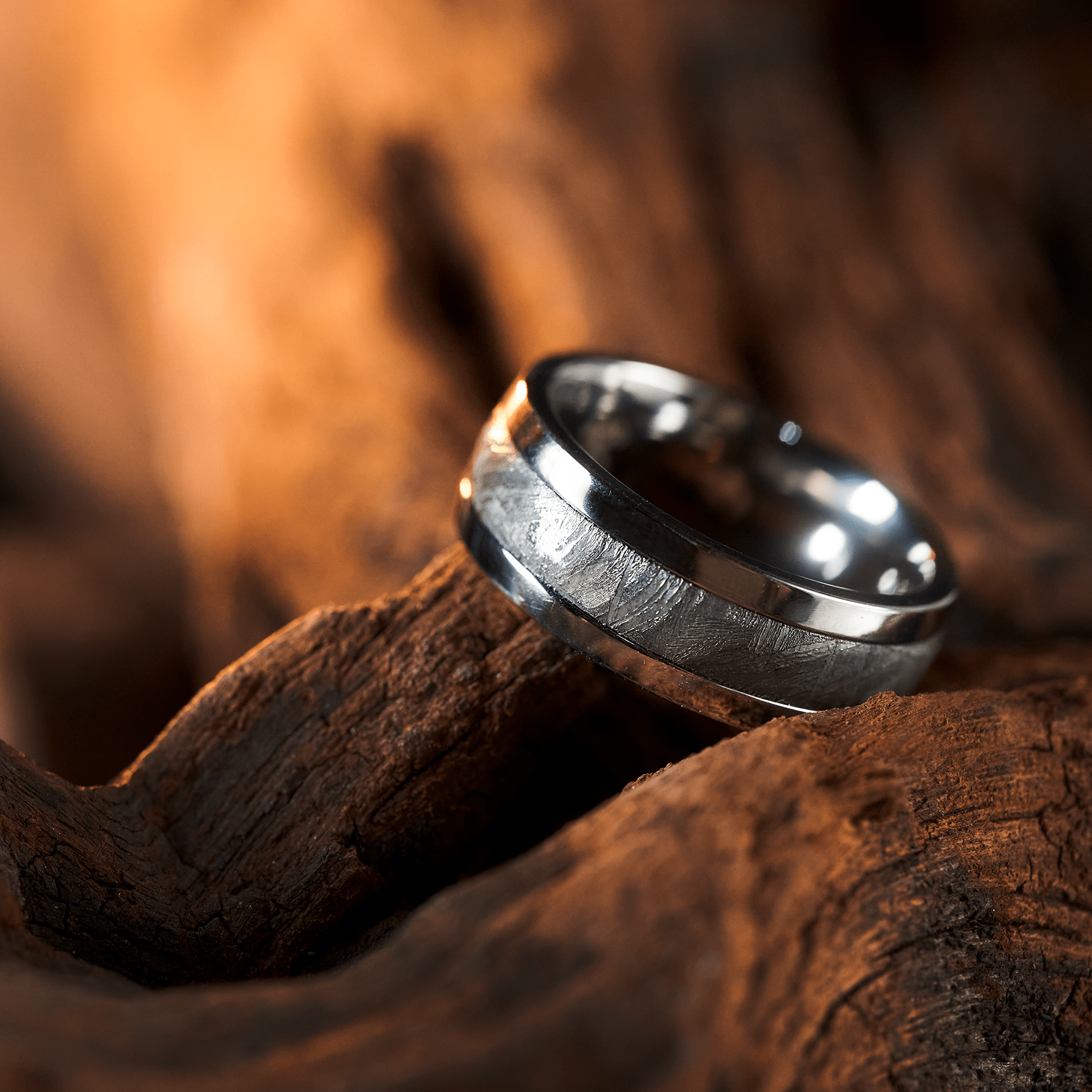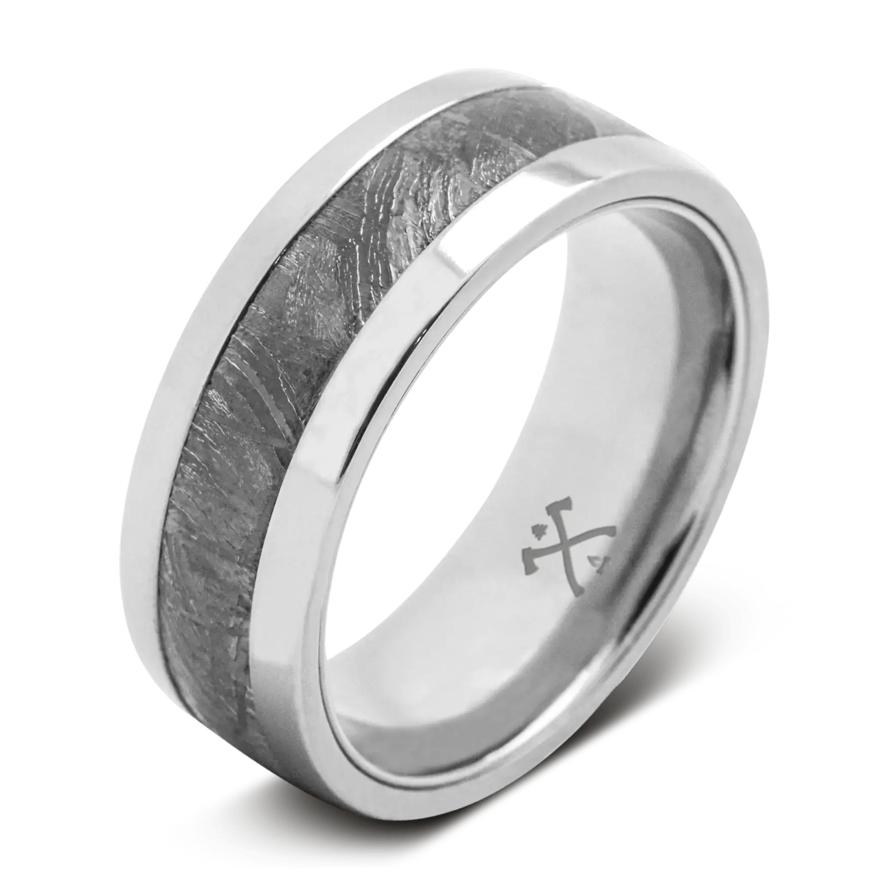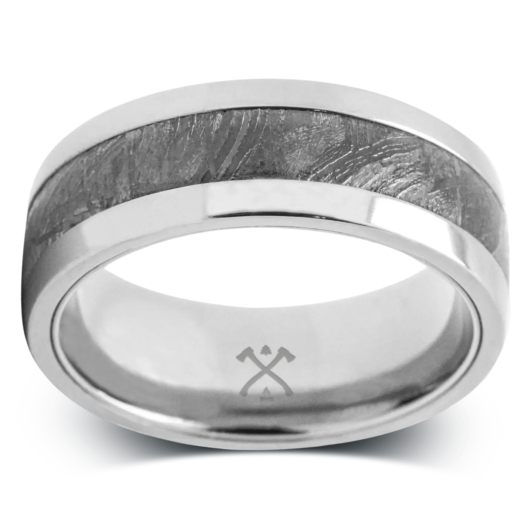 The Rocketeer - Men's Ring / Wedding Band - Titanium with Meteorite Inlay