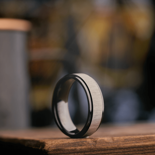 The Storyteller- Men's Ring / Wedding Band - Charcoal Gray Zirconium