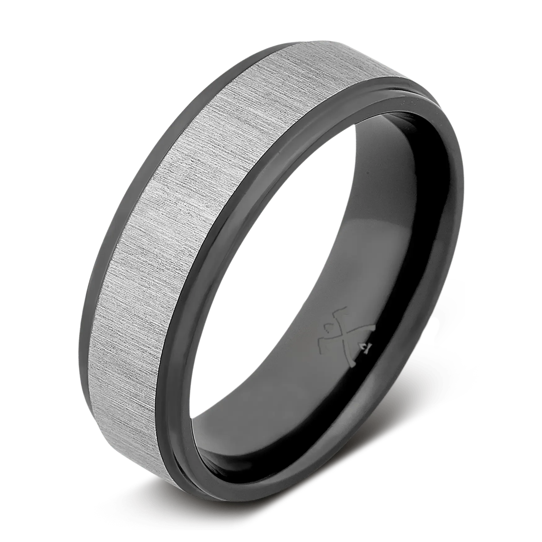 - Flat Stepped Edge Design in Comfort Fit with Silver Cross Satin Finish