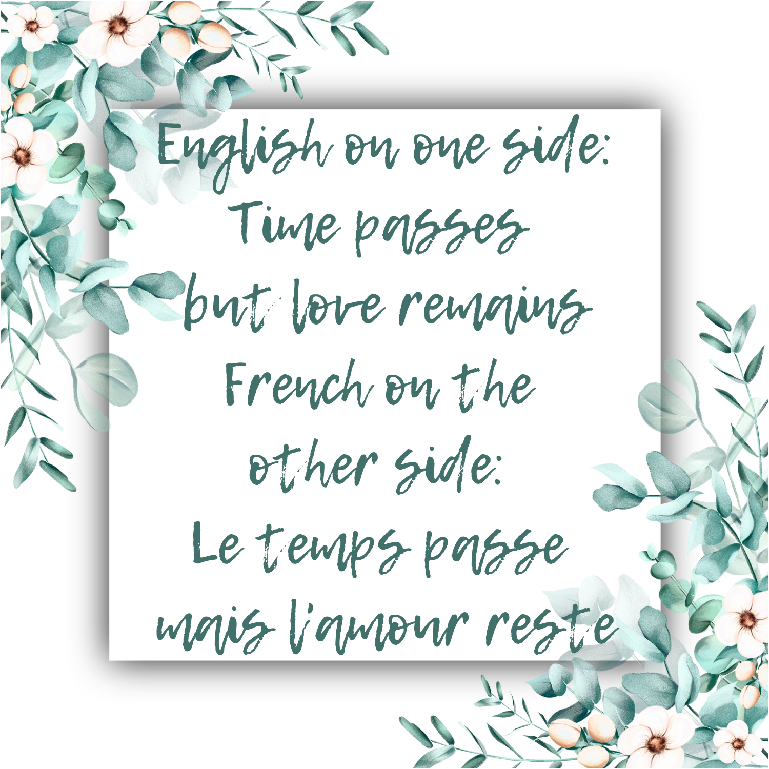 This elegant sterling silver, undulating teardrop pendant is finely engraved with a very special quote, an eternal truth in English on one side and French on the other. The organic shape is designed purposefully to touch and remember: