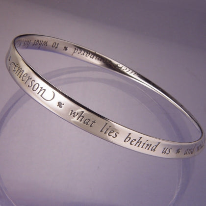 Since the infinite for many equates with the divine, Mobius jewelry is the perfect medium on which to inscribe prayers and other inspiring and memorable quotations which elevate and comfort the spirit.