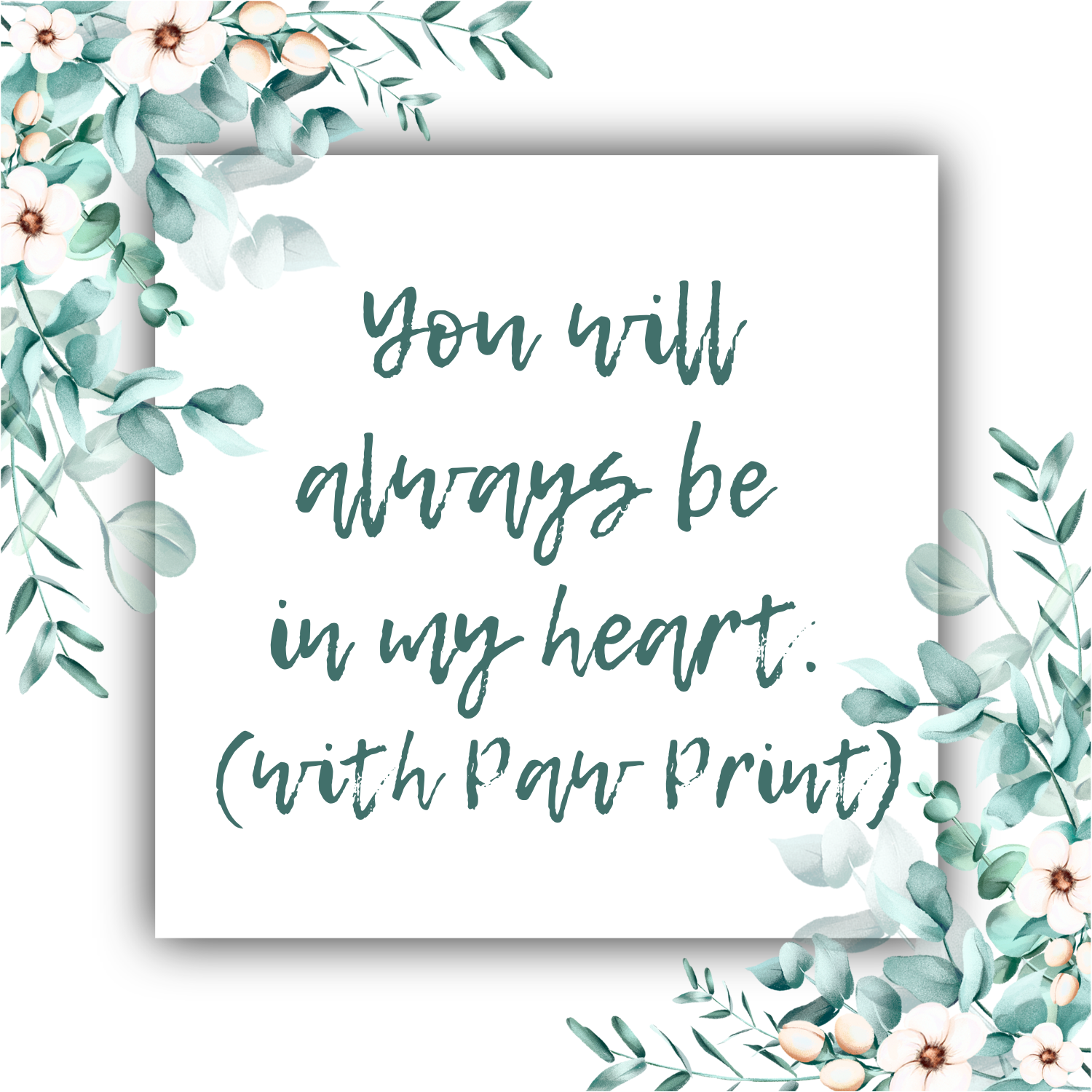 Perfect gift for a pet lover. This is taken from the complete quote, "There are no goodbyes for us. Wherever you are, you will always be in my heart" from a letter written by Ghandi to a dear friend.